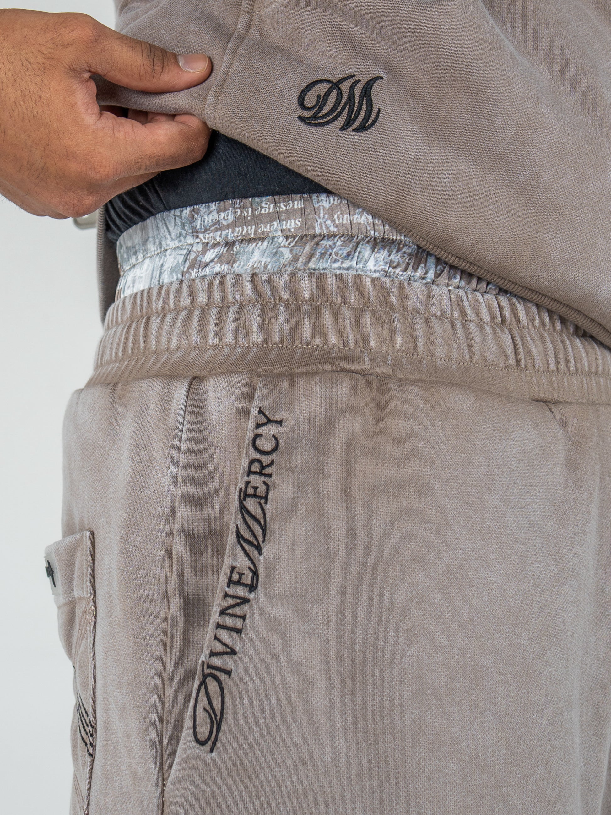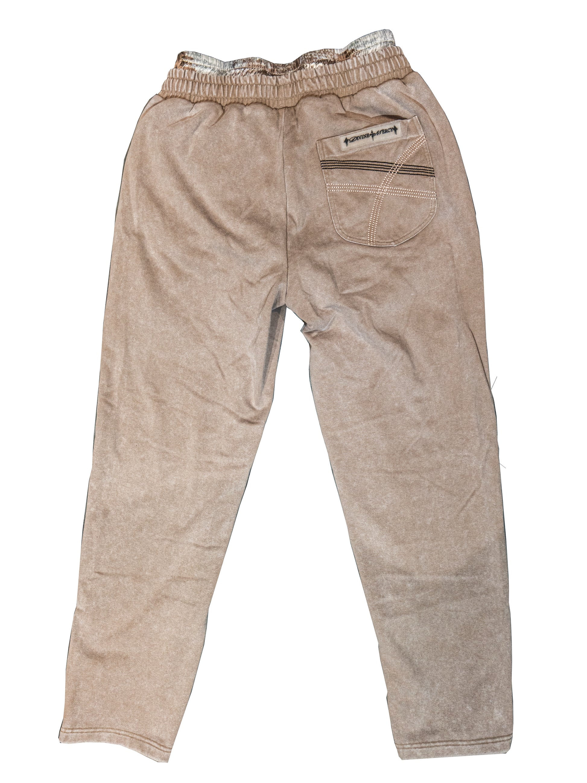 Two-toned Divine Mercy silicone branding patch stitched into leg panel